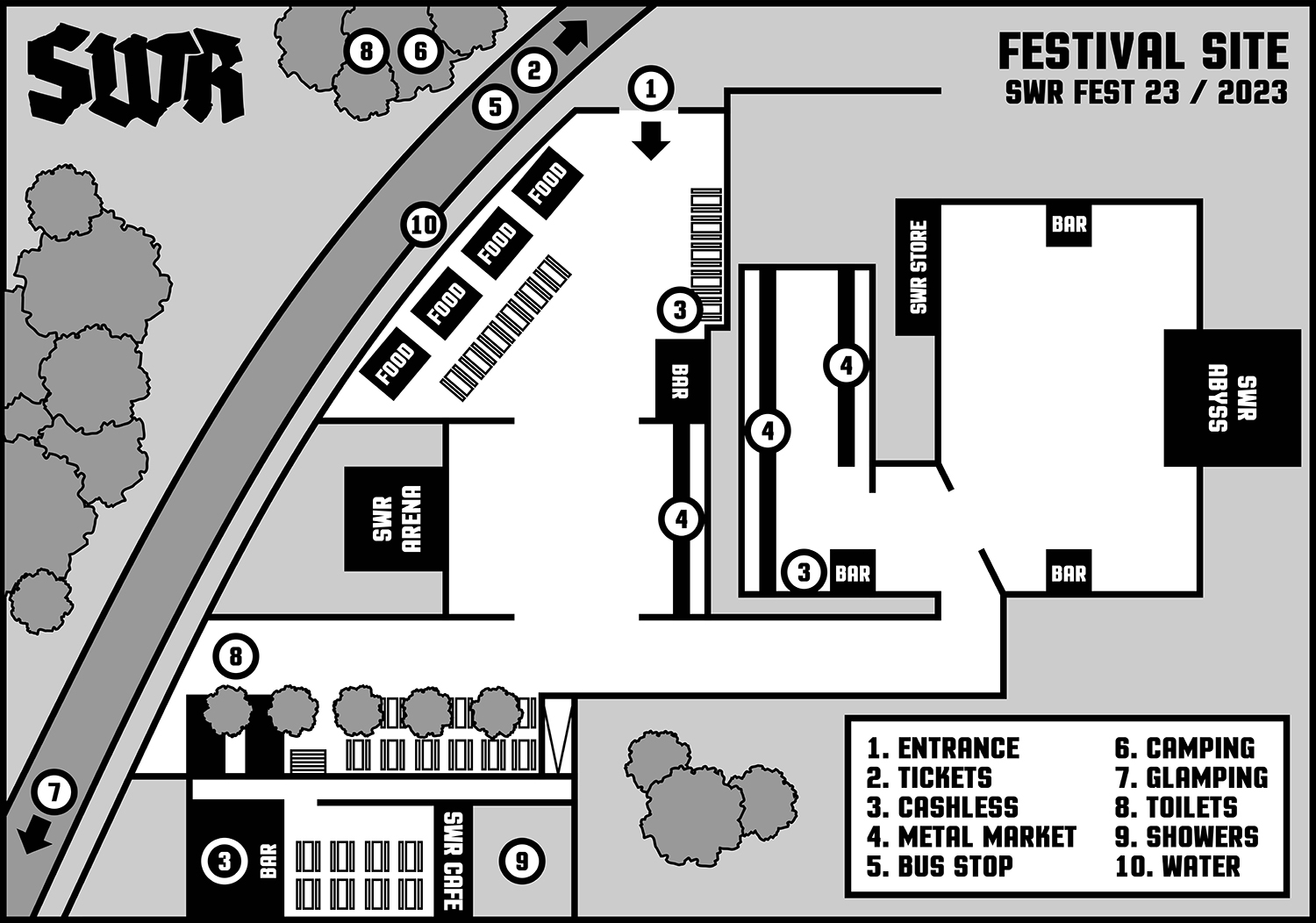 O camping do SWR encontra-se situado numa área arborizada a apenas dois minutos do local principal e abre suas portas uma semana antes do início do festival. A entrada é gratuita. O sol não representa um problema, mesmo nos dias sem chuva, graças à densidade de árvores que proporciona sombras em abundância. O horário de despertar depende unicamente do quão alto são os vizinhos. Este local oferece banheiros limpos diariamente, instalações para lavagem de louça, iluminação noturna, além de um supermercado, cafés, restaurantes e um quiosque nas proximidades.